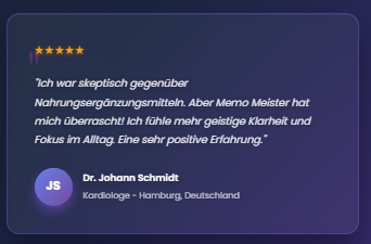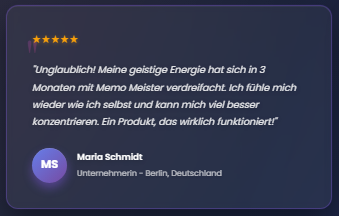 Im Gegensatz zu kurzfristigen „Energie-Boostern“ oder rein stimulierenden Produkten setzt Memomeister an den grundlegenden Faktoren der kognitiven Leistungsfähigkeit an. Anwender berichten von verbesserter Konzentration, stabilerer geistiger Energie und spürbarer mentaler Klarheit — und vor allem von einem gesteigerten Selbstvertrauen im Alltag.