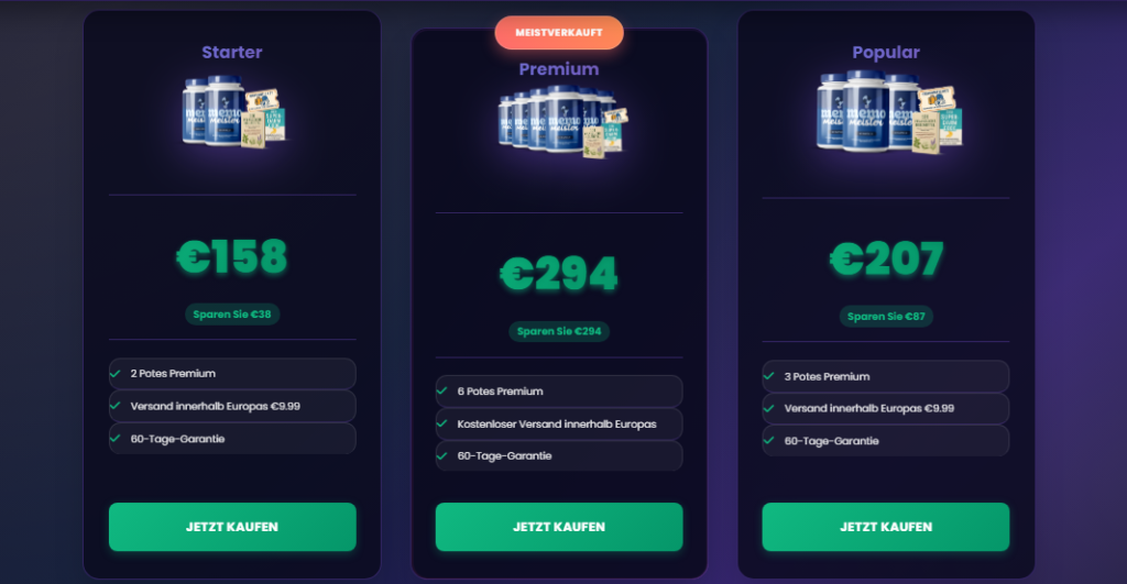 Der ursprüngliche Preis auf der offiziellen Website beträgt 588 € für ein Paket mit 6 Flaschen. Durch den aktuellen Sonderrabatt kostet dasselbe Paket jedoch nur 294 €, sodass Sie lediglich 49 € pro Flasche zahlen.